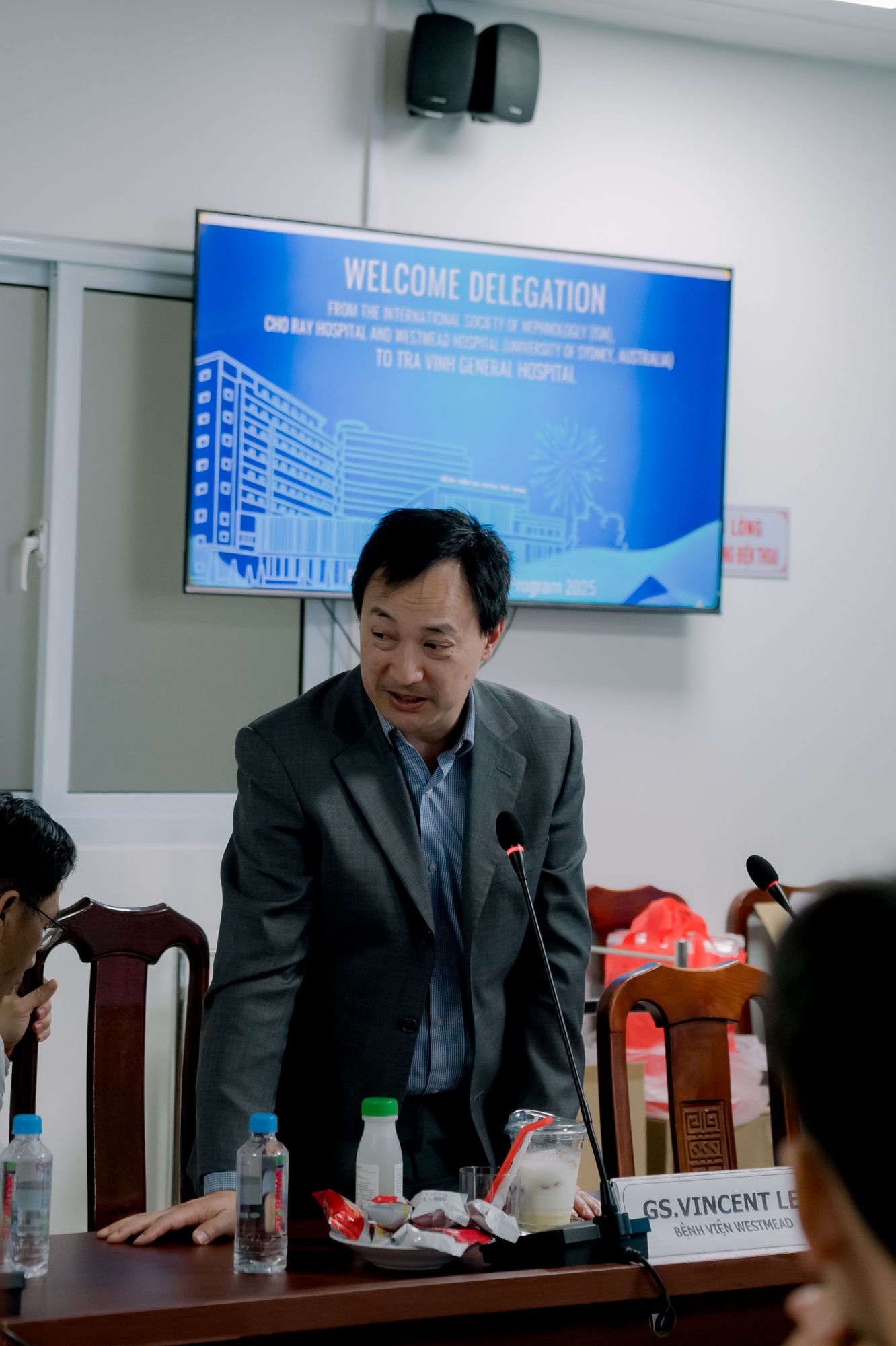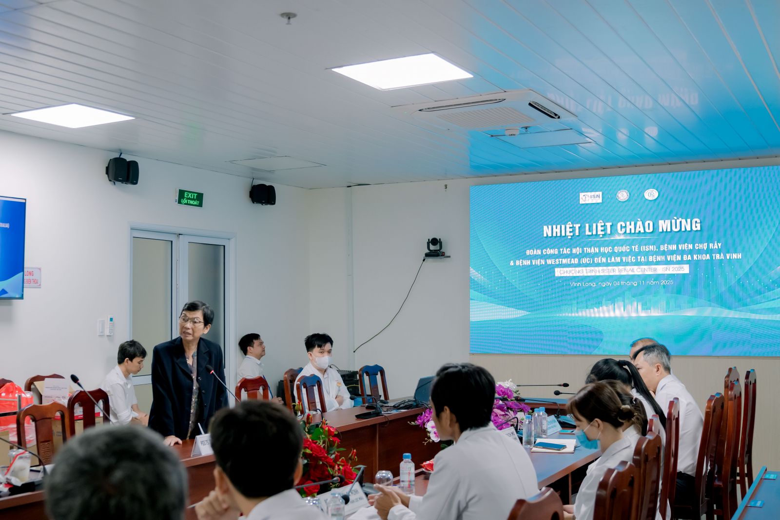 BS.CKII. Huỳnh Hữu Nhân – Giám đốc Bệnh viện Đa khoa Trà Vinh, bày tỏ sự trân trọng và cam kết phối hợp chặt chẽ với ISN, Bệnh viện Chợ Rẫy và Bệnh viện Westmead trong quá trình triển khai chương trình, hướng đến mục tiêu mang lại lợi ích thiết thực cho người bệnh và phát triển chuyên môn ngành Thận học tại địa phương.