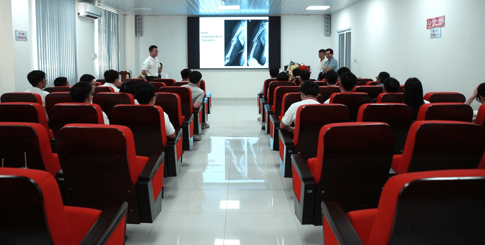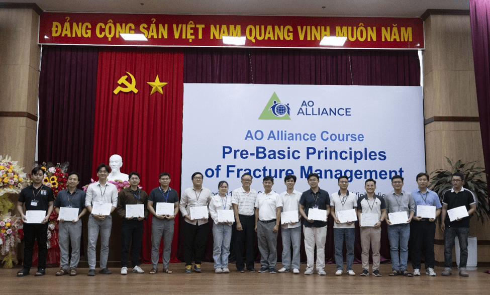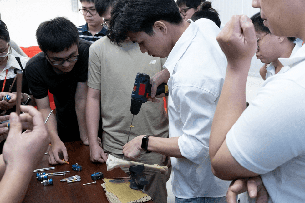 Phần thực hành lâm sàng với mô hình sawbone được đặc biệt chú trọng, giúp học viên rèn luyện kỹ thuật phẫu thuật kết hợp xương, làm chủ dụng cụ vis, nẹp, khung cố định ngoài, đinh nội tủy, kỹ thuật sử dụng máy C-arm, và các nguyên tắc vô trùng, chăm sóc bệnh nhân sau mổ, dưới sự hướng dẫn tận tình của đội ngũ giảng viên.