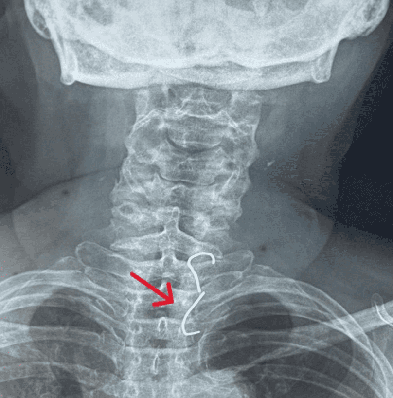 Hình chụp X-quang dị vật trong thực quản bệnh nhân